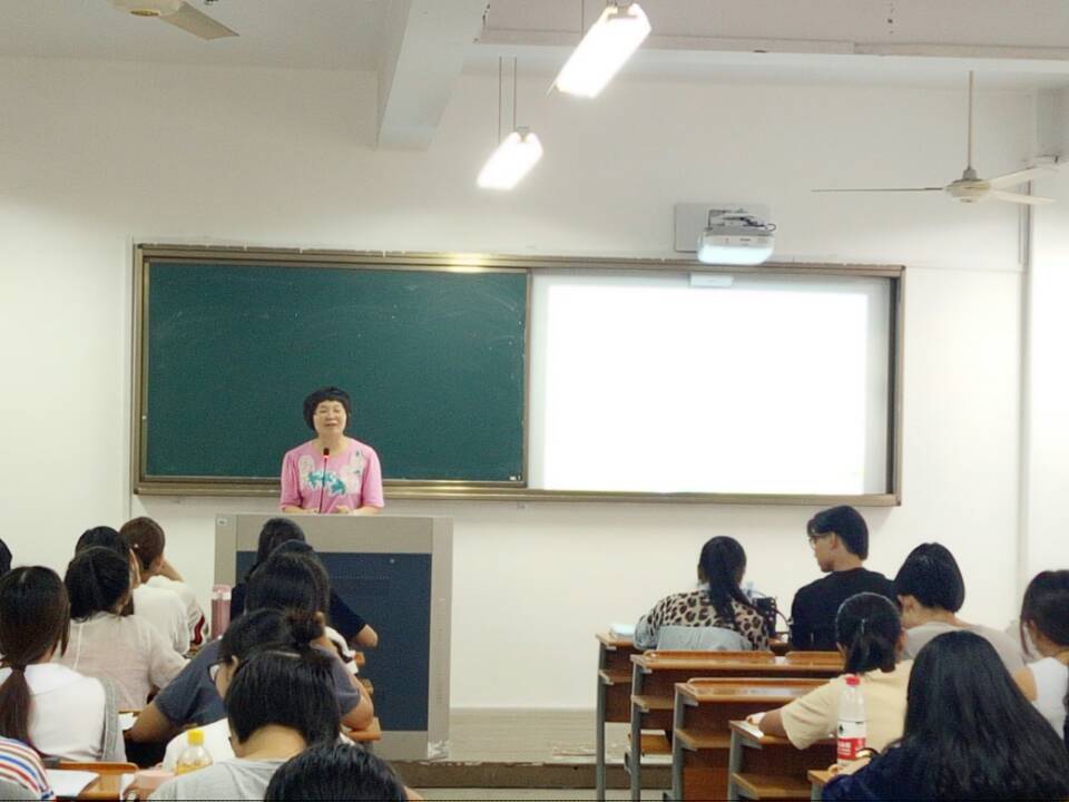 随后,在同学们热烈的掌声欢迎中,薛丽娜老师开始了关于“初中英语教育教学实习过程中的‘三课’”的专题讲座。薛老师就实习中可能遇到的三大问题“观课、备课”、“教案”、“上课”展开了讲座,给予了实习生们许多宝贵的建议和经验分享。此外,薛老师还就初中一具体单元内容进行了详细说课,同学们都侧耳倾听,勤做笔记,努力从这次讲座中汲取薛老师传授的实践真知。