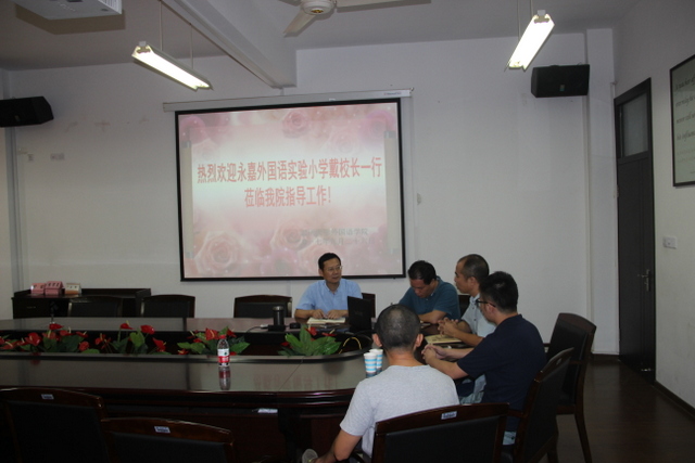 戴校长详细介绍了永嘉外国语实验小学的情况,重点讲述了目前碰到的一些的一些问题,希望我院在教师培训和教学质量的提高方面能给予永嘉外国语实验小学支持。