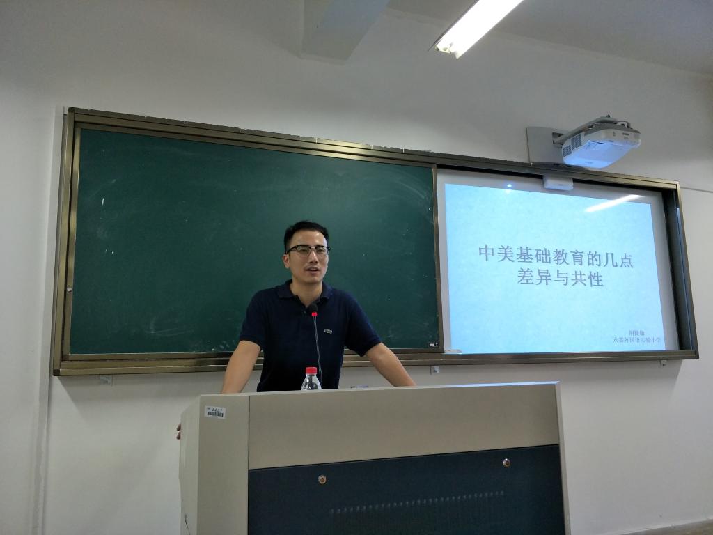2017年9月26日下午1:30,我校校友、现永嘉县外国语实验小学教师胡捷敏在外语楼210教室为15英语师范班的学生开展关于“中美基础教育的几点差异与共性”的讲座。