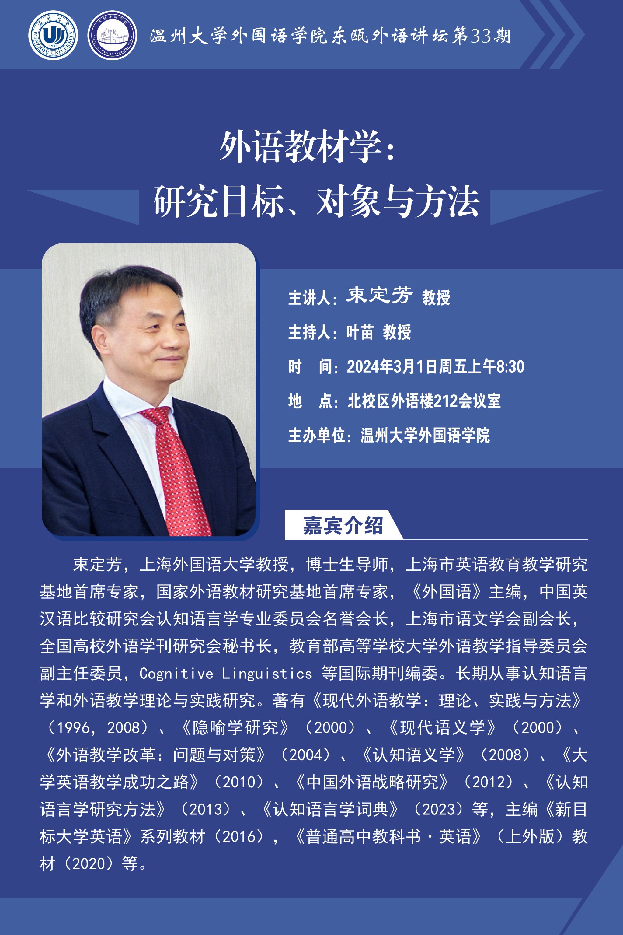 东瓯外语讲坛第33期预告:外语教材学:研究目标、对象与方法