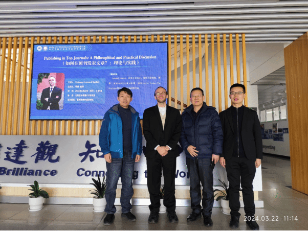 2024年3月22日,南京大学教授、博导Leonard Neidorf来我院作了题为“Publishing in Top Journals, A Philosophical and Practical Discussion”(如何在顶刊发表学术论文?理论与实践”的讲座,讲座由太阳成集团tyc7111cc院长叶苗教授主持,我院各个系的本科生、研究生、部分老师,以及温州理工学院等院校的老师聆听了讲座。