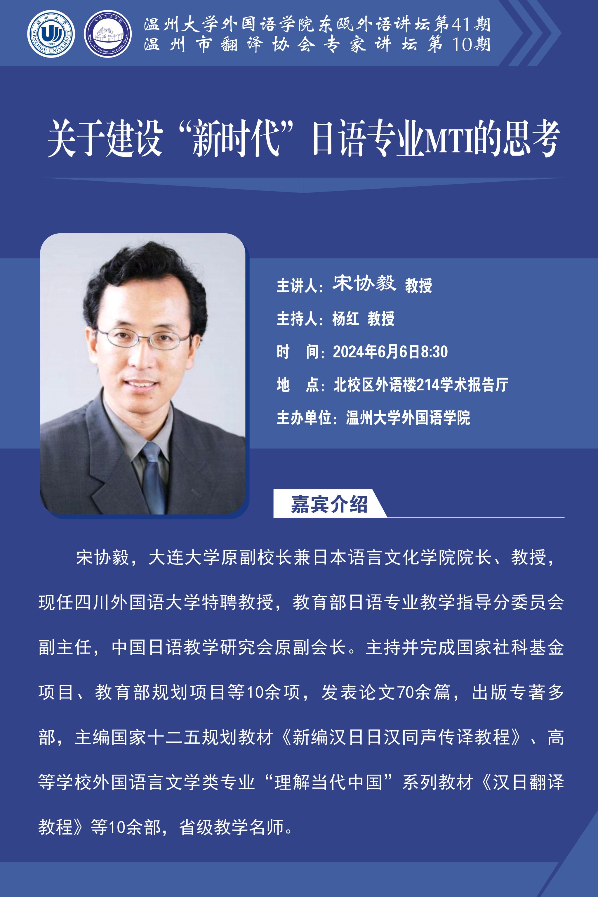 东瓯外语讲坛第41期预告:关于建设“新时代”日语专业MTI的思考