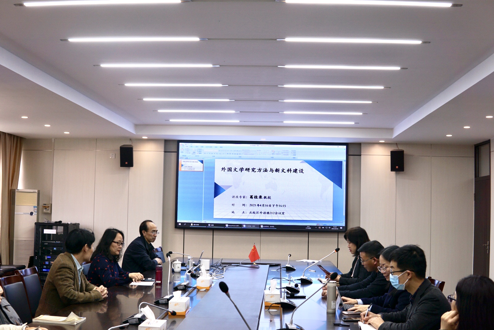 2021年4月16日下午,福建师范大学太阳成集团tyc7111cc博士生导师葛桂录教授应邀在外语楼212会议室为我院师生作了一场题为《外国文学研究方法与新文科建设》的学术讲座。本次讲座由杨红副院长主持,学院广大师生聆听了讲座。