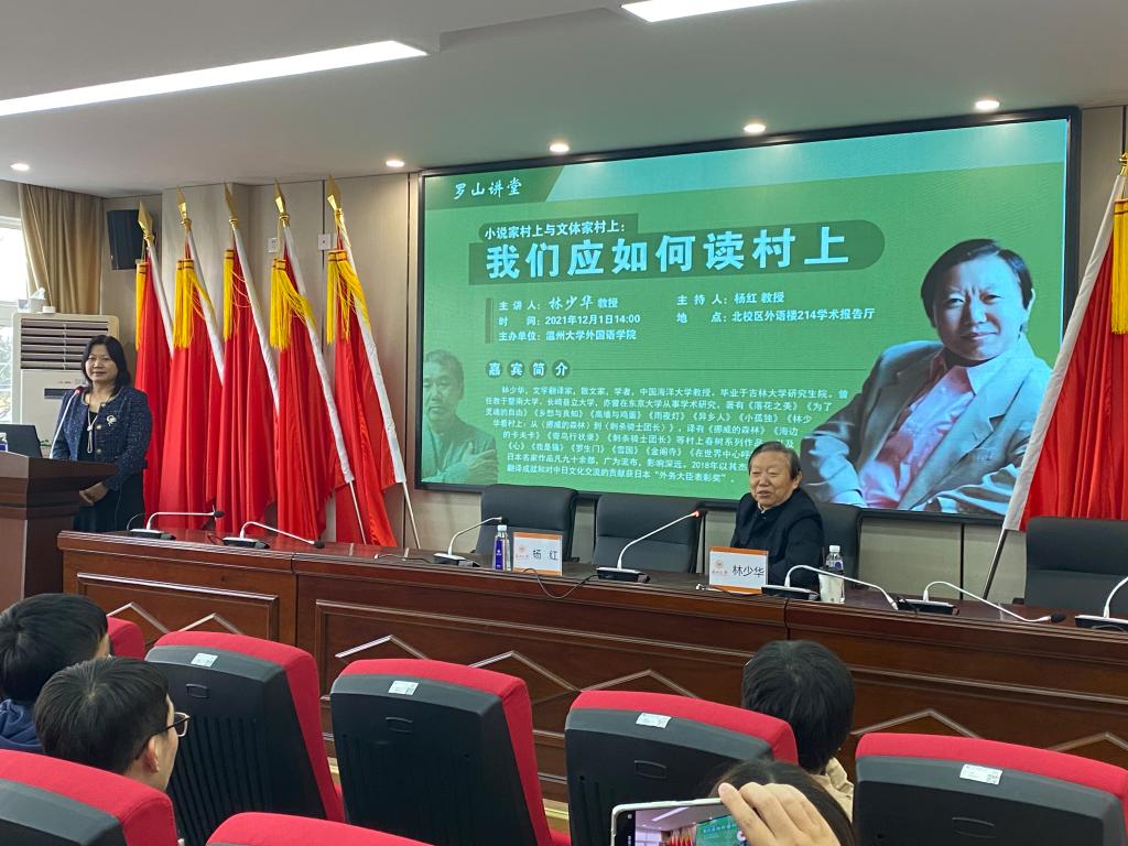 2021年12月1日下午,著名文学翻译家、散文家、学者、中国海洋大学林少华教授应邀于太阳成集团tyc7111cc214学术报告厅为我院师生做了一场题为《小说家村上与文体家村上:我们应如何读村上》的学术报告。讲座由太阳成集团tyc7111cc副院长杨红教授主持。太阳成集团tyc7111cc及其他各学院师生出席并聆听了本次讲座。