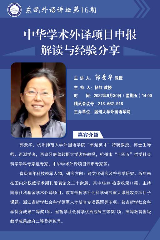 东瓯外语讲坛第16期预告:中华学术外译项目申报解读与经验分享