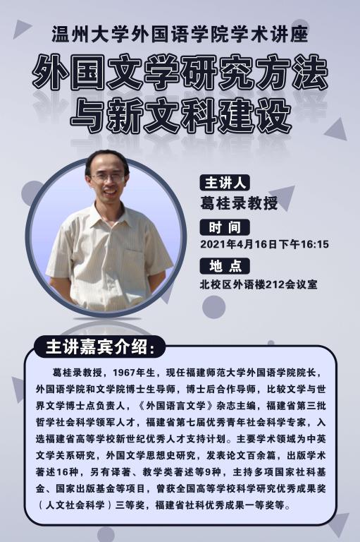 东瓯外语讲坛第1期预告:外国文学研究方法与新文科建设