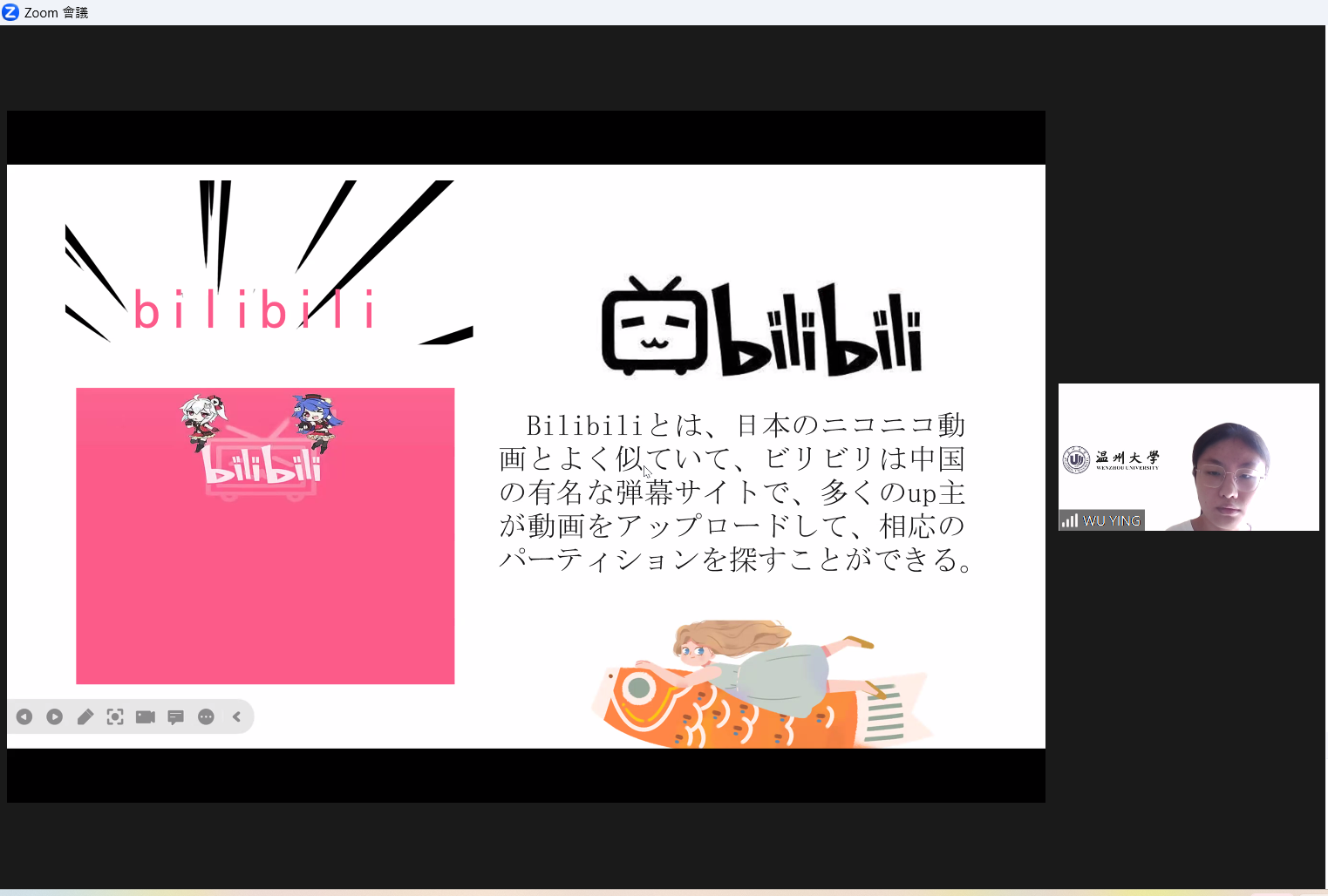 2023年10月15日,举行了第三届云端国际文化交流论坛。我校、岭南师范学院、日本松本大学、台湾义守大学、大连大学、韩国东新大学等12队参加了此次论坛。我校日语专业22级的9位同学分三组在论坛中发言,发言的题目分别为:中日恋爱观、中日流行事物及中日人口高龄化,发言内容涵盖了热门话题及大学生关心的问题。