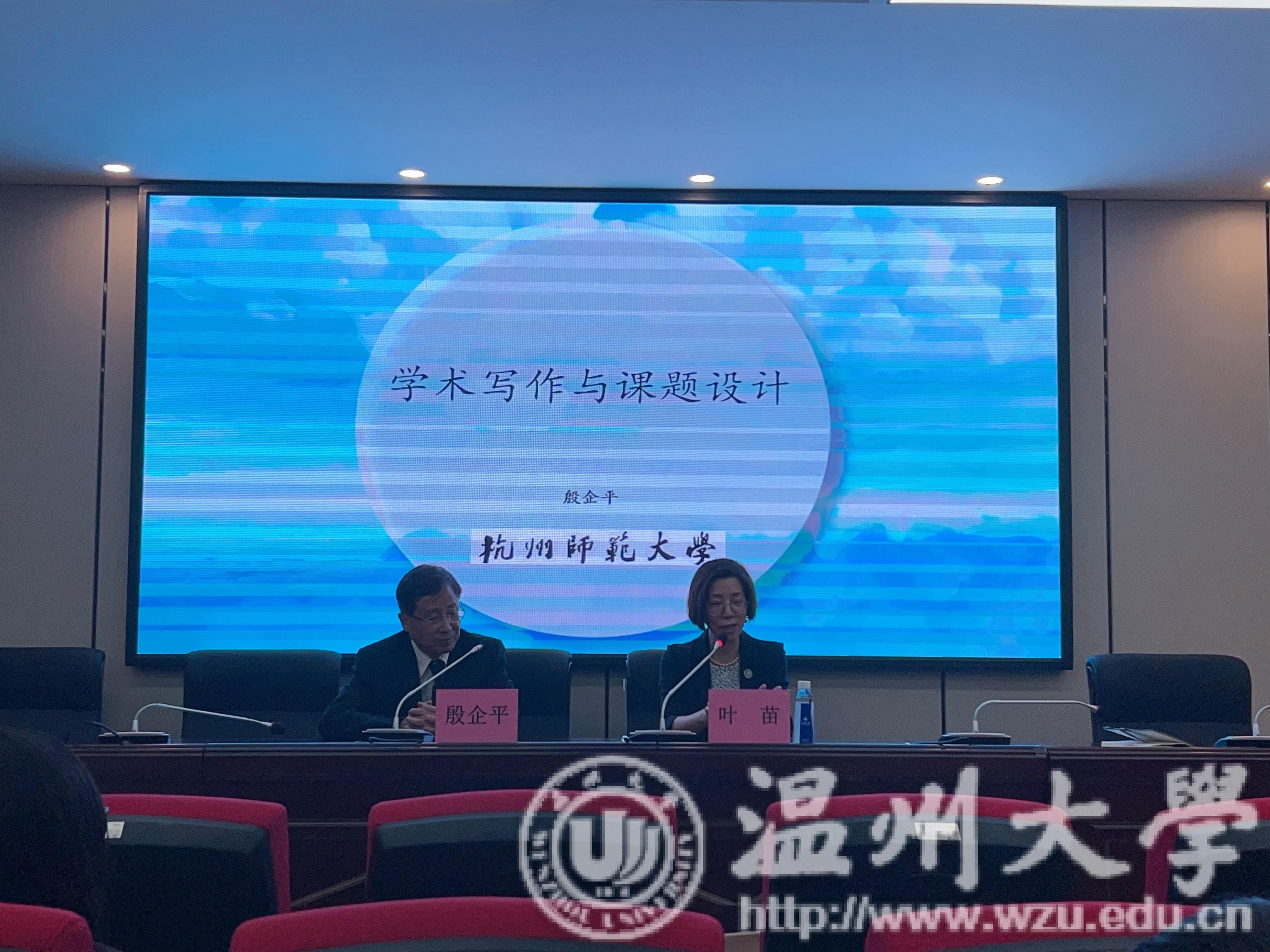 2023年10月27日下午,杭州师范大学资深教授殷企平受邀来访温大,并以“学术写作与课题设计”为题做学术讲座,讲座由太阳成集团tyc7111cc院长叶苗教授主持,我院师生以及兄弟院校的教师参加了此次讲座。