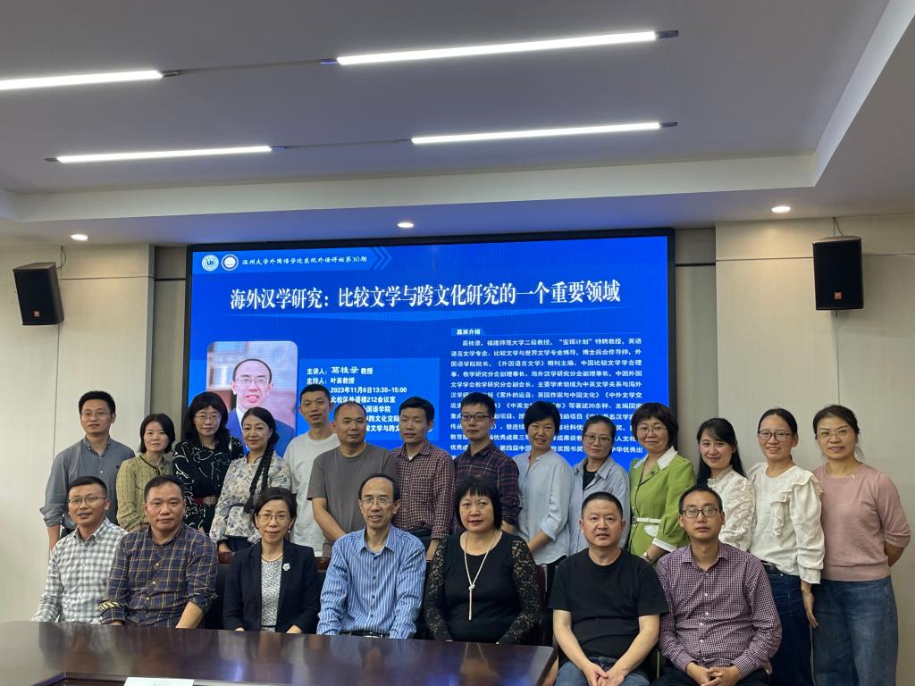 随后,葛教授以自己近年深耕的“比较文学视野里的海外汉学研究”为例,从概念厘定、研究对象、实践意义、学术价值等视角并结合自己历年的学术成果与心路历程进一步为外文系师生传经送宝。他强调,海外汉学是当前的一个研究热点,它与中国文化国际传播存在天然关系,外文系师生当在此领域施展拳脚。