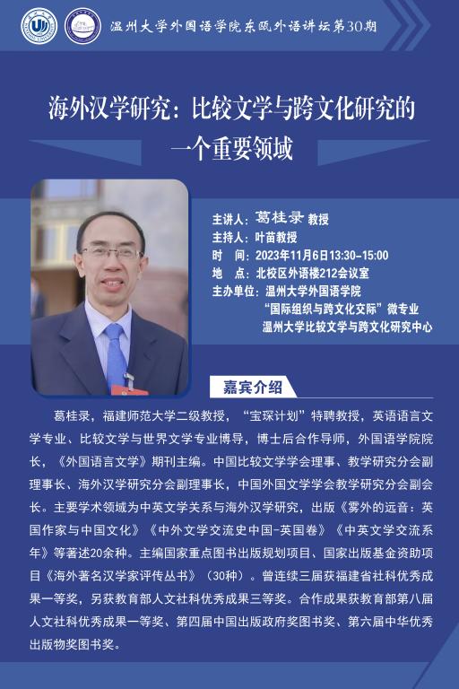 东瓯外语讲坛第30期预告:海外汉学研究:比较文学与跨文化研究的一个重要领域