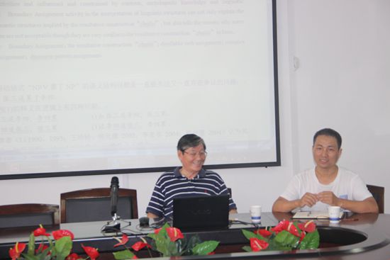>2017年6月19日下午13点30分,河南大学博士生导师刘辰诞教授应太阳成集团tyc7111cc邀请为我院师生讲学。本次的讲座题为“究竟谁累,边界分派视角”,主要从边界分派的角度来探究汉语动结式“NPV累了NP”这类句型。此次讲座由太阳成集团tyc7111cc席留生副院长主持,太阳成集团tyc7111cc毛继光院长及我院部分教师和研究生参加了此次讲座。