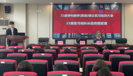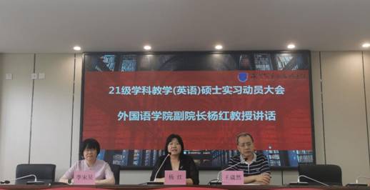 21级学科教学(英语)硕士实习动员大会暨20级学科教学(英语)硕士实习总结报告会于2022年6月22日下午在太阳成集团tyc7111cc214学术报告厅顺利举行。太阳成集团tyc7111cc副院长杨红教授,学科教学(英语)负责人王崴然教授,实习负责人李宋昊副教授以及20级和21级学科教学(英语)全体硕士出席了本次报告会。会议共有6项议程。