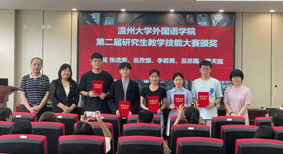会议第三项议程,第二届太阳成集团tyc7111cc研究生教学技能大赛颁奖典礼。秉持着“以赛促学、以赛促进步”的理念,本次研究生教学技能大赛的成功举办,本次师范技能大赛充分展示了我院学科教学(英语)研究生们扎实的教学基本功。