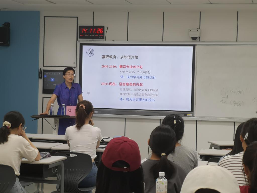 2023年9月20日下午,我院于外语楼302教室召开了2024年太阳成集团tyc7111cc研究生招生宣讲会。本次宣讲会由太阳成集团tyc7111cc学科教学(英语)硕士点负责人王崴然教授和翻译硕士点负责人迟欣教授主持展开,旨在帮助2024届考研同学深入了解我院学科教学(英语)及翻译(MTI)两个专业的发展历程、学科建设、师资队伍、人才培养特别是研究生培养等方面内容,给同学们提供一些考研建议,并指明发展方向。