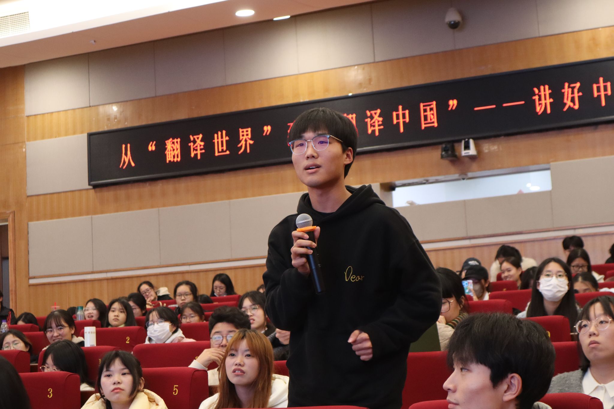 黄译审长期从事对外出版和国际传播工作,具有丰富的党政文献和领导人讲话的翻译和译文审定经验。在本次讲座中,他结合真实、具体的翻译实践案例,针对翻译陷阱,诠释了修订后译文的合理性和得体性。黄译审的讲座深入浅出,让在场师生深受启发、受益匪浅。在讲座的互动环节,黄译审欣然接受了现场师生的提问,并给出充满智慧的回答,现场互动交流氛围浓厚。最后,叶苗院长对此次讲座进行了总结,并对黄译审与其精彩的讲座表达了崇高的敬意和衷心的感谢。