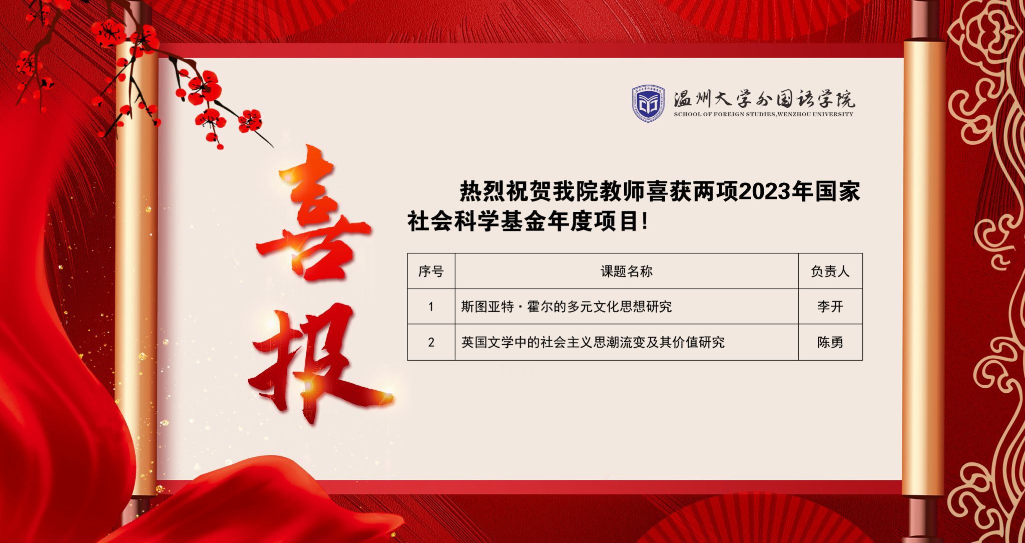 2023年10月,学院一举获得2项2023年度国家社科基金项目