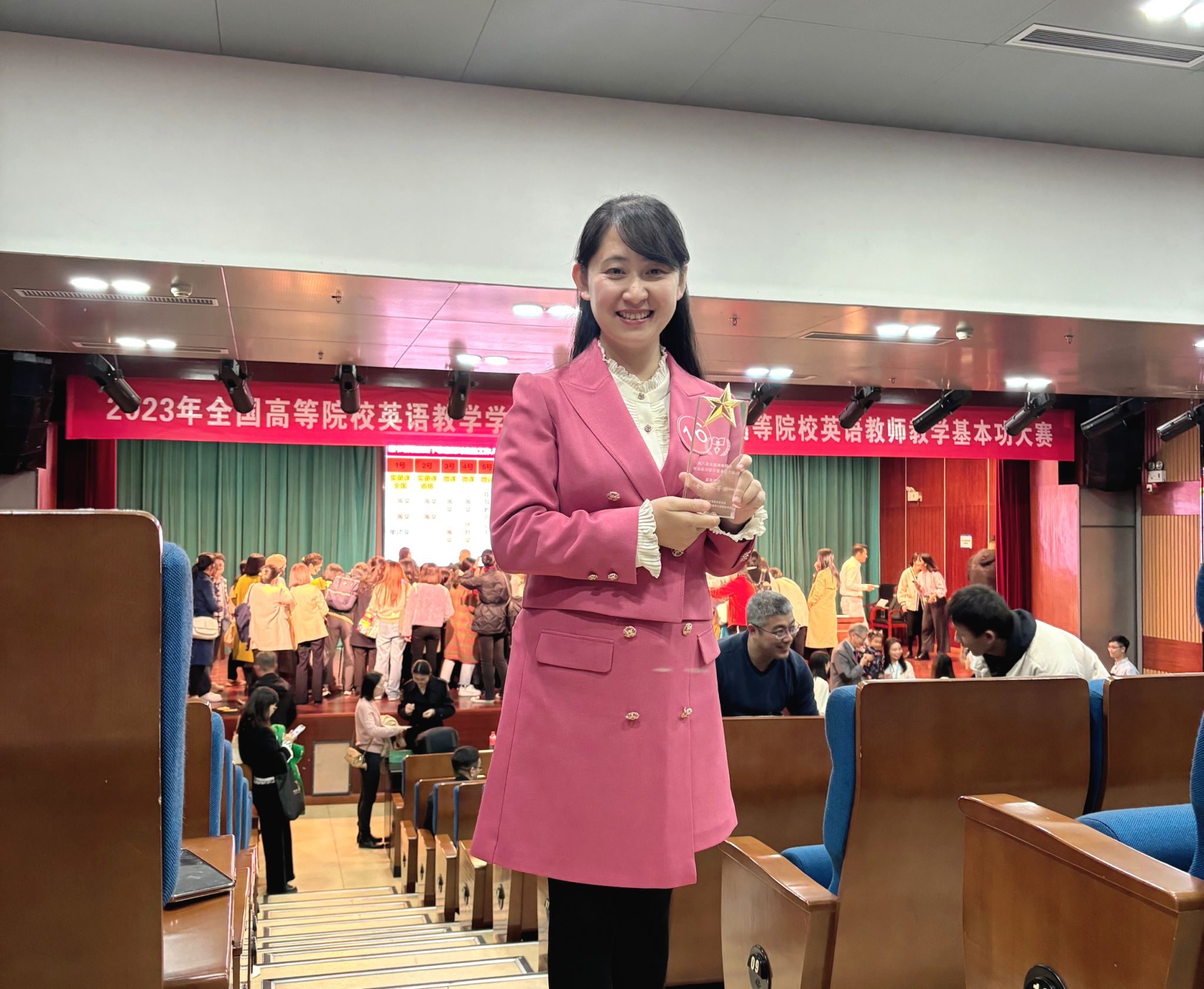 2023年11月,童芳莉老师斩获全国高等院校英语教师教学大赛一等奖(第一名)
