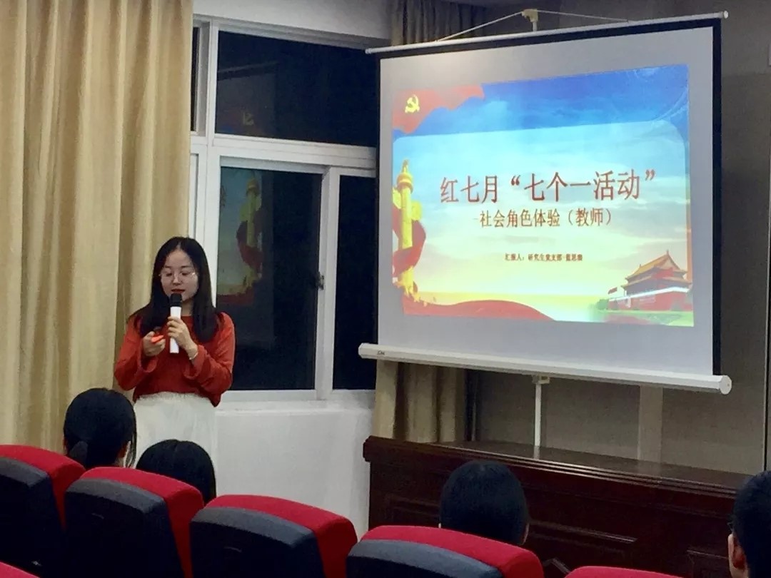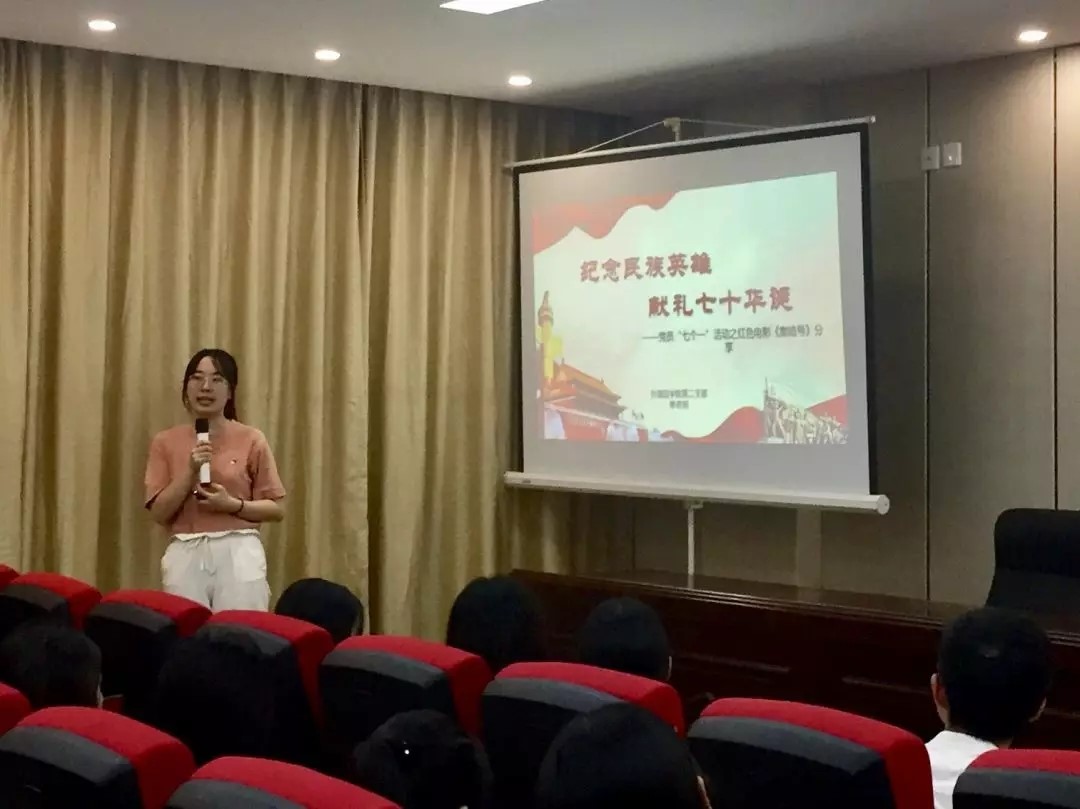 本次分享会共有7位党员作为主讲人,有研究生党支部的蓝思秦同志分享教师角色体验;有学生第二党支部的袁黎丽同志分享自己在跨境电商实习的经历;有学生第二支部的单奇妍同志分享红色电影《集结号》的观影感受;赵凯萍同志分享网络微党课陈望道与《共产党宣言》的学习感受;谢月霞同志分享了红色电影《周恩来的四个昼夜》的观影感受,沈忆汝同志分享暑假作为一名乡村教师的体验 杨臻宇同志分享红色景点,他寻访红色踪迹——位于瓯海区渔潭村的中共浙南第一代表大会纪念馆,去了解历史,缅怀历史,以史为鉴,确立新目标,踏上新征程。