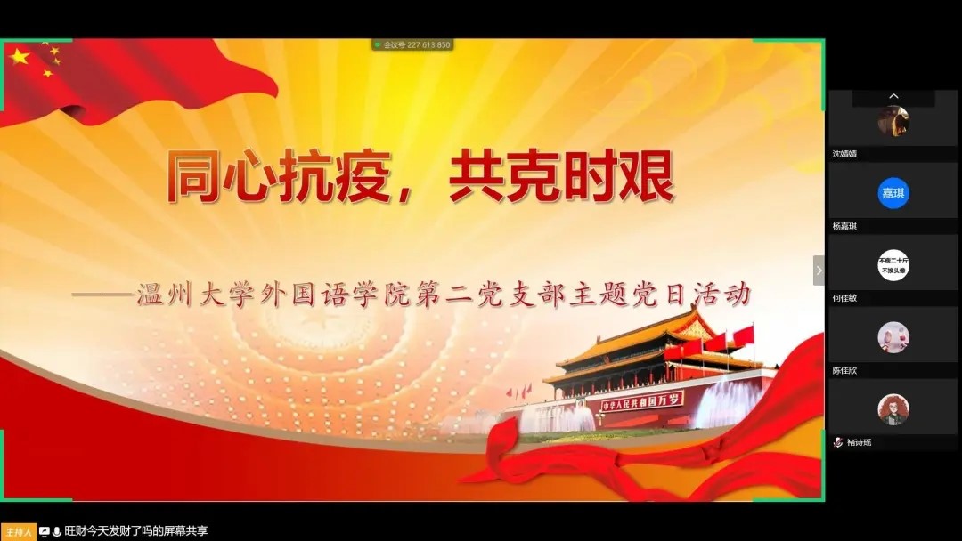 2020年3月17日18:00,太阳成集团tyc7111cc学生第二党支部开展了“同心抗疫,共克时艰”为主题的线上党日活动。