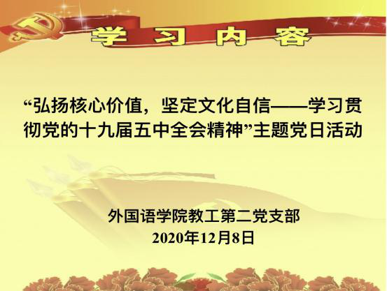 支部书记讲党课 | “弘扬核心价值,坚定文化自信——学习贯彻党的十九届五中全会精神”专题学习会
