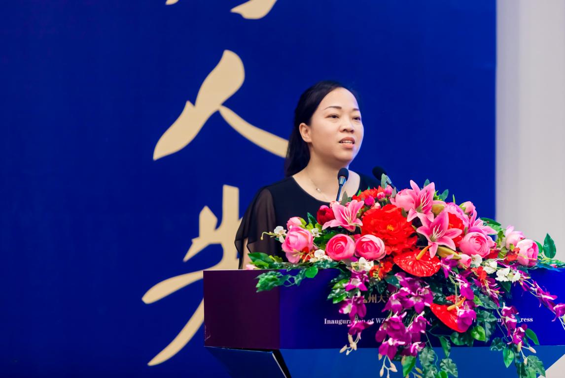 院党委书记姜海燕致辞。她代表学院对长期关心支持学院发展的校友表示感谢,向校友介绍了学院的发展现状和取得的成绩。在过去的岁月里,母院凝心聚力、众志成城,着力书写了学院发展的“奋进之笔”:英语专业获浙江省一流专业建设点,日语专业成功获批、第一届翻译专业学生顺利毕业......这些成就的取得是学院师生恪守初心的写照,也凝聚着广大校友的一份辛劳与热爱。