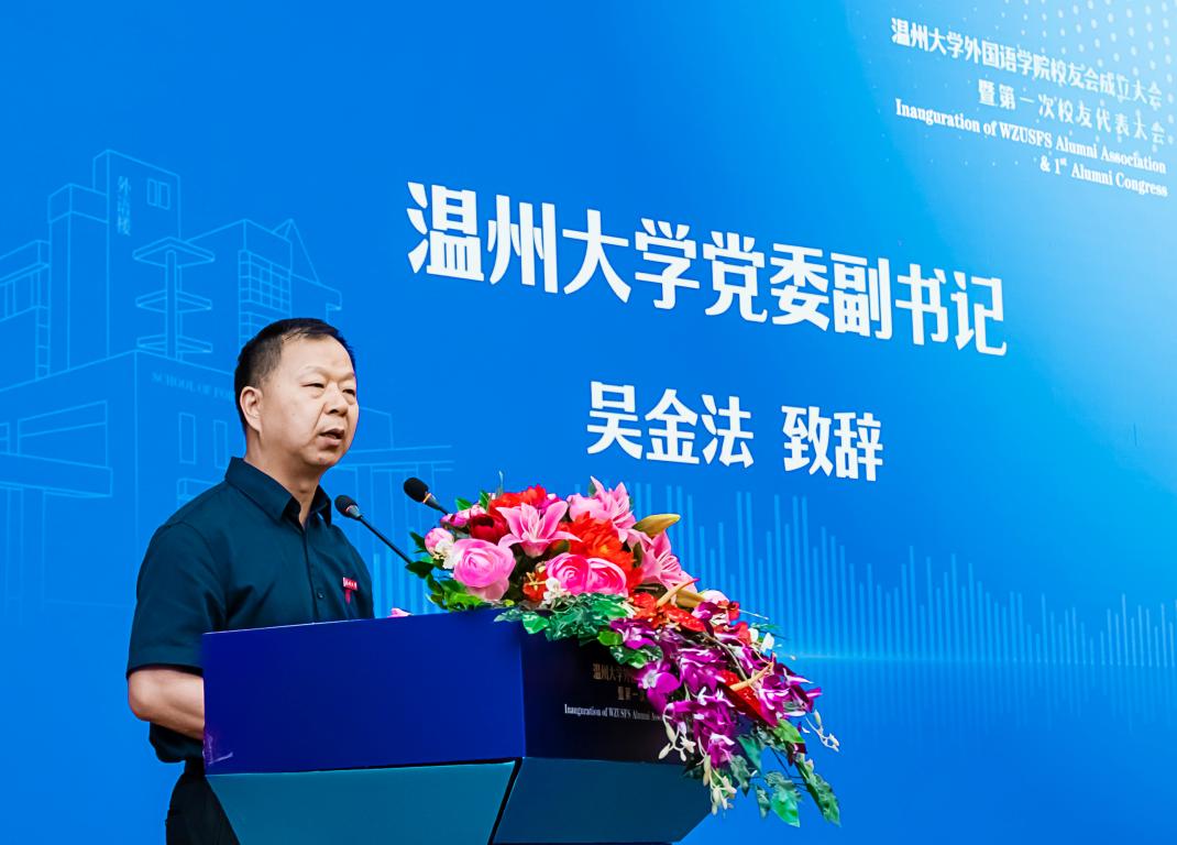 我校校党委副书记吴金法讲话。他对校友会的成立表示热烈祝贺,向校友回家表示热烈的欢迎。吴金法书记表示,校友是母校的靓丽名片和珍贵财富,优秀校友在各行各业发光发热,广大校友为母校的发展建言献策,提供各种力所能及的帮助,是母校发展最可信赖、最能依靠的重要力量。