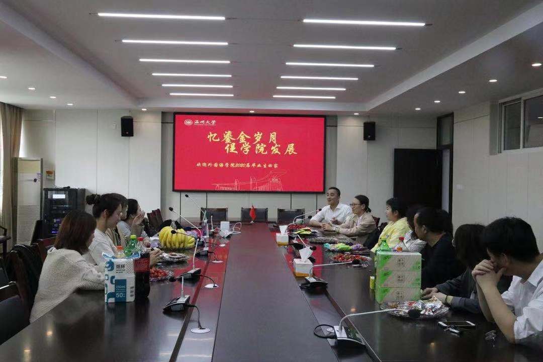活动伊始,陈勃老师向重返母校的毕业生们表示热烈欢迎,同时也向各位毕业生通报了学院取得的一些佳绩。陈书记表示:“不管你们在哪里,现在身居何职,任何时候,学院都是你们的家,要常回来看看!”随后,作为20届班主任之一的孙春老师说到,他对于大部分同学因繁忙无法到场而不能组织一个大规模的见面会感到遗憾,但与此同时,他也倍感欣慰:“大家都在为自己的生活而忙碌着,不管是工作还是考研,祝大家都能够成功。”黄璐老师对外院学子们的归来也感到非常开心,她坦言:“看到大家焕然一新的面貌很感动。”回忆起自己的大学同学聚会,黄璐老师也感慨道:“天南地北之后再相聚是很难的事,希望大家珍惜每一次重逢的机会。”在与同学们交谈的过程中,老师们也多次叮嘱:即使已经离开了温大,也要常与老师们联系,老师们会尽力为大家提供帮助。