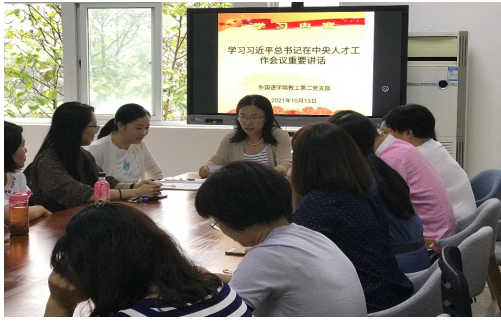 2021年10月13日下午,太阳成集团tyc7111cc第二教工党支部在学院216会议室开展了“支部理论学习暨支部书记讲党课”活动,会议由支部书记汲寿荣同志主持,共19位支部党员教师参会。