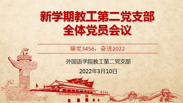 会议首先由支部书记王老师带领参会党员教师认真学习和讨论了学校新学期教工大会会议精神,总结了学校谢树华书记和赵敏校长的报告内容和精神指示,对标“更讲政治、更高水平、根据特色、更有作为”发展主线和“锚定3456,奋进2022”年度工作主题主线,砥砺拼搏、接续奋斗,共同谱写新时代我校高质量内涵式发展,以优异成绩迎接党的二十大胜利召开。