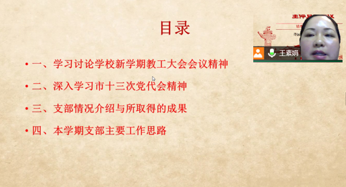 2022年3月10日晚上,太阳成集团tyc7111cc第二教工党支部通过线上腾讯会议的形式开展了新学期全体党员会议。会议由支部书记王素娟同志主持,支部25位党员教师准时参会。