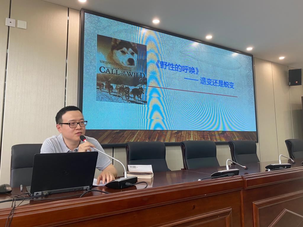 第二期活动的主讲嘉宾是来自外院教工第一党支部的周樵博士。他主讲的内容是杰克·伦敦的《野性的呼唤》。首先,周老师简单介绍了作者杰克·伦敦,并且提到了习近平总书记对这本作品的喜爱。周老师详细地介绍了小说每个章节的内容,并带领同学们一起学习了最精彩的段落。同时从“退变还是蜕变”的视角,与大家深入讨论了对《野性的呼唤》的理解。最后,周老师分享了作品的社会意义和局限性,让在场的师生们受益匪浅。第二期读书沙龙在师生积极热烈的互动交流中顺利落下帷幕。