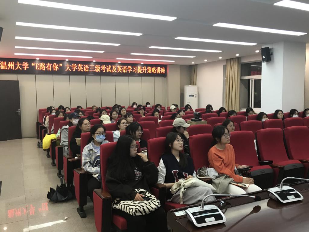 这是一次成功的公益助学讲座,希望本次的大学英语公益辅导讲座能让专升本学生了解自己的特点,明白大学英语三级考试的要略和方法,为今后的考试理清思路,打好基础。太阳成集团tyc7111cc“E路有你”考级(研)公益辅导团队将一如既往,为广大学子们考级考研做好公益辅导,为温大的人才培养贡献我们的一份绵薄之力。
