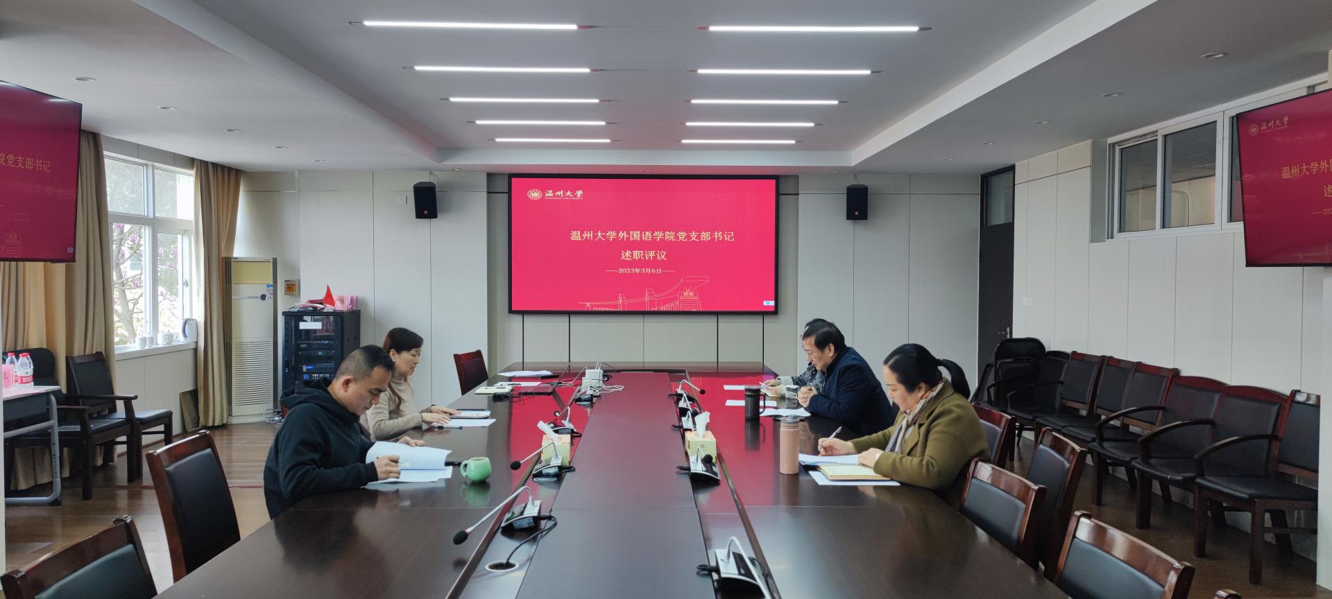 为贯彻落实《关于深化推进新时代高校党建工作的意见》(浙委办发〔2019〕75号)《关于进一步加强新时代高校党建工作的实施意见》(温委办发〔2021〕59号)文件精神,按照《我校“抓院促系”强基行动方案》工作要求(组发〔2021〕6号),3月6日下午,在外语楼212会议室召开党支部书记述职评议会。各党支部书记参加了述职评议。会议由学院党委书记杨丽君老师主持。