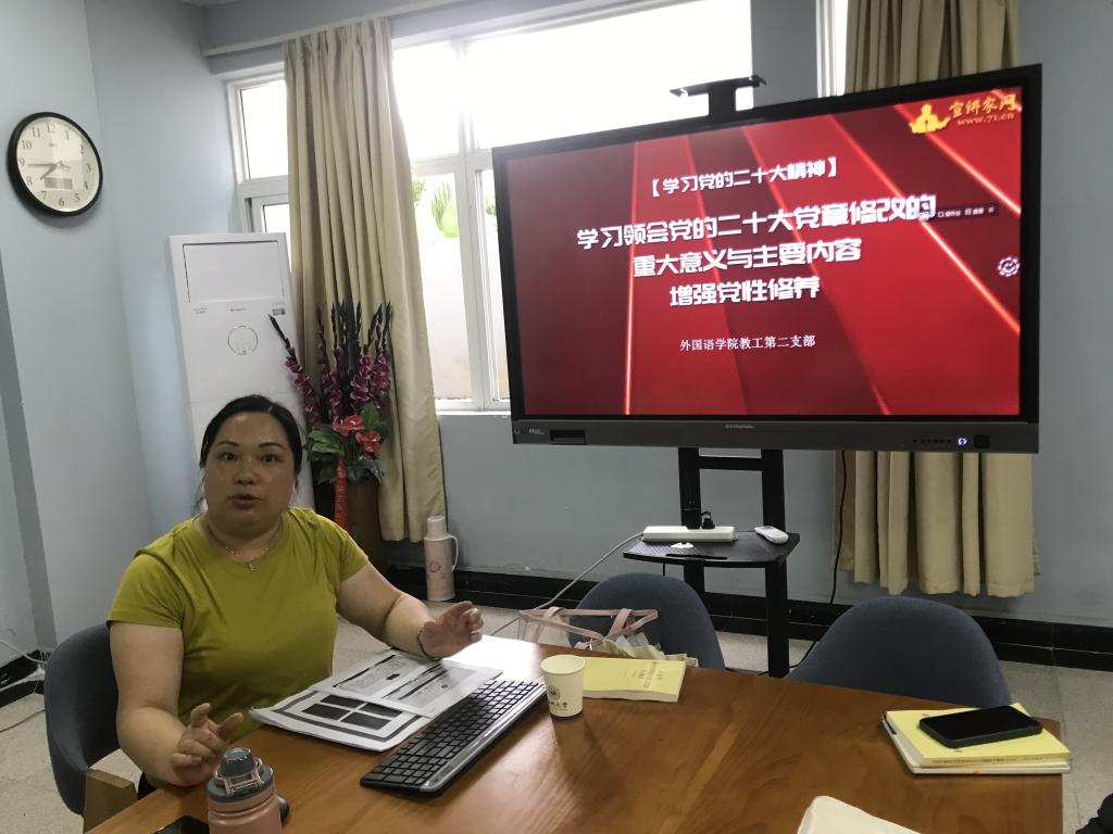 2023年5月24日下午,太阳成集团tyc7111cc教工第二党支部在外语楼211室“党员之家”开展了全体党员政治理论学习会。会议由支部书记王素娟同志主持,支部党员教师准时参加会议。