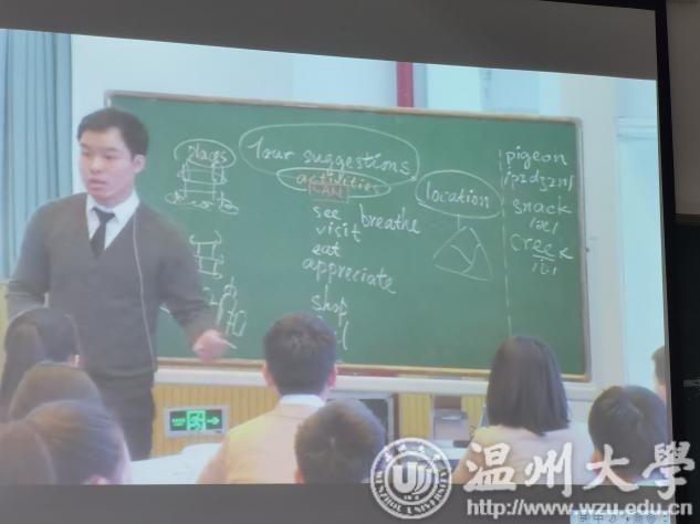 而后,老师同我们分享了一节优质公开课——Unit1《Writing a travel guide》。这节课的合作环节中,授课老师在活动前的准备工作,在活动中对学生的观察、调试和及时的帮助提问以及在活动后引导学生回答对我们来说极具借鉴意义,值得我们反复思考揣摩。这些活动既能够让学生去加深对主题意义的理解,又能促进学生运用所学知识技能、方法策略和思想观念等。最后,金浪老师为大家总结了其中的几点精彩手法以及亮点,包括如何引导学生读图以此来帮助学生培养方位感解决真实的问题,如何引导学生学会自评与互评,如何布置小组大活动等。