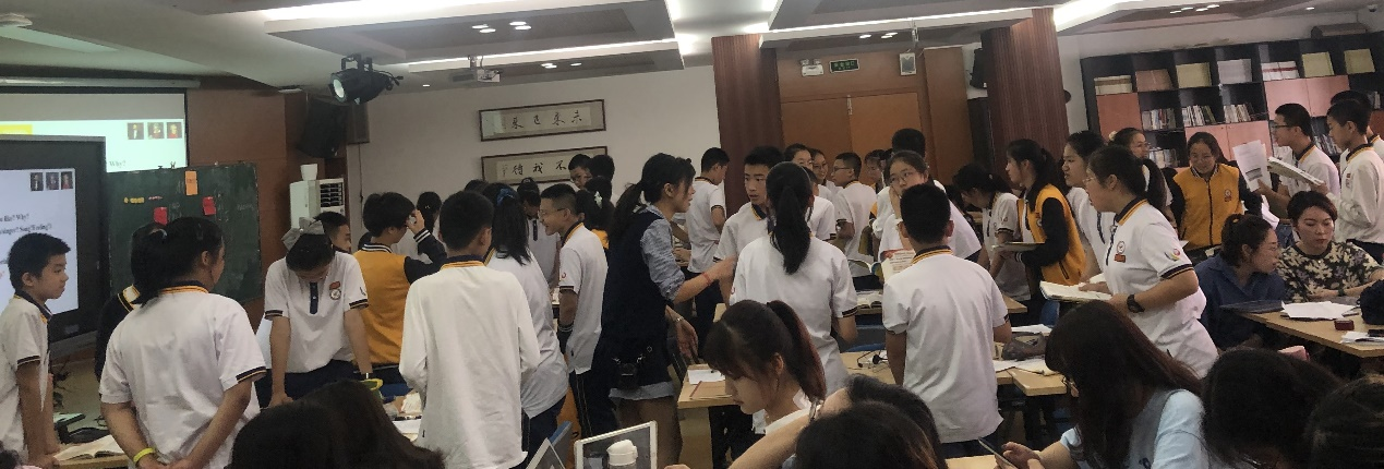 金浪老师也就今天的示范课进行了针对性地点评,进一步的阐述了“以用致学”的教学理念,并分享了对于教学风格、合作学习、“生·动课堂”的体会与经验,指出不同教学风格的老师间应该互相借鉴融通,取长补短,保留性格特色的同时,要将课“踩实”,不能脱离教学实质。金老师深刻的见解令现场师生备受感悟。紧接着杨凡虹老师也对十二中先锋创新的“生·动课堂”教学理念及运用进行了阐释,生·动课堂一语双关,既指让学生动起来的课堂,也寓意课堂生动活泼。两位老师的分享给同学们很大的启发,同学们也现场感受到了生动课堂与合作教学的教学效果,学到了许多具有深刻意义的教学方法与经验。