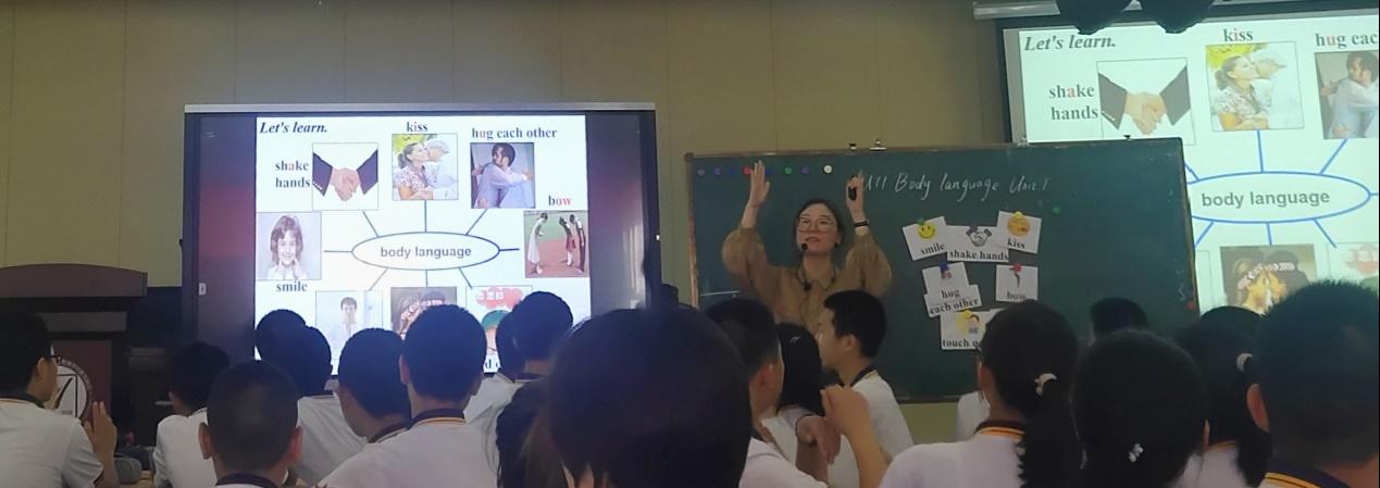 下午的课堂由李馨霄老师为我们拉开帷幕,李老师的课堂深刻的贯彻了以用至学、合作学习的理念。《Talk with New Friend》这堂听说课教学活动的设计以生生合作为基础,促使学生在合作中进行学习,整个过程中,学生们的反响热烈,课堂气氛活跃。在场观课的温大学子们备受吸引,切实感受到了生·动课堂的魅力。第二节课中,同学们认真观摩了欧雅诗老师的课例《They touch noses!》。欧老师首先通过chant让学生迅速融入课堂,在导入主题的同时也活跃了课堂气氛。本节课围绕国际师生来学校的主题引出关于body language的相关表达,在最后的环节进行相关的输出,首尾呼应,层层递进,最终落脚到“尊重不同文化,尊重是一种美德。”的情感渗透。教师将情感态度价值观融入课堂教学,将智育与德育紧密结合。与此同时,同学们和工作室老师们的研课评课活动也如火如荼得进行着。同学们就课堂内容根据不同的量表从不同的角度发表了自己的建议与意见,大家在相互探讨和交流中学习老师的教学中的闪光点,也提出了部分修改和完善意见。师生们在这过程中碰撞思维,共同进步。