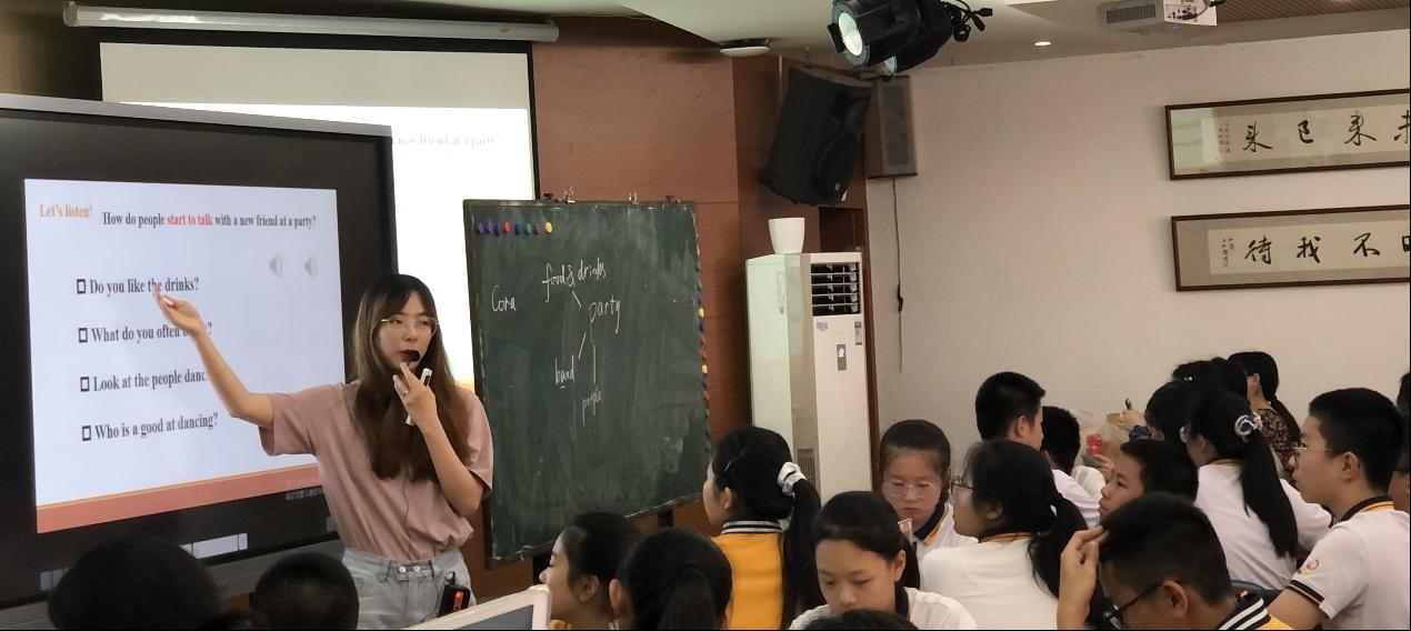 上午,金浪老师开展了《初中英语听说课学科核心素养的夯实》的讲座。金老师重点强调了自主学习,能力培养和合作学习这三个核心素养,在教学时不仅要注意文本知识内容,更要注意文本中蕴含的情绪和价值观,将听说密切结合,做到以用至学。金老师幽默风趣的讲座,让学员们深入了解了如何上好一堂听说课,也为后续的观课与评课打好了理论基础。今日第一堂课堂展示选用了《7B M10U1 What did you do?》听说课作为展示载体。本课由邹佳伶老师的视频导入隐藏了很多文本语言和目标句型在其中。老师在整节课中都始终聚焦于学生在输出时是否正确使用了过去式,并且在听中多次设置相关问题,注重帮助学生将外部信息化为内部语言,引导学生借助所学目标语表达自己的想法。总而言之,这是一堂非常完整和流畅的听说课。第二位周麦棋老师基于《7B M12U1 It's so beautiful》展示了一堂生动活泼的课堂。首先用几首歌进行导入活动,极大地激起了学生的学习兴趣,整堂课都贯穿着以学生为中心的原则,课堂气氛非常活跃。老师还在听力策略环节给出小建议,让学生只记下单词首字母,有效提高学生听力理解的效率。