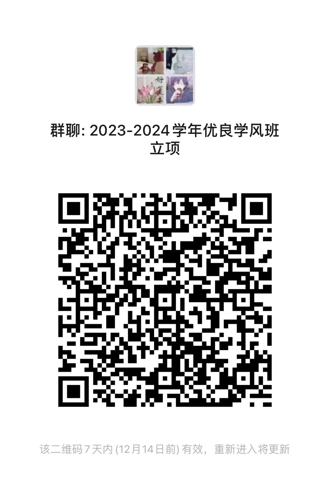 请意向申请优良学风班的班级负责人于12月12日16:40之前进群,修改自己的群昵称为“班级+姓名”,后续通知将在群里下发。