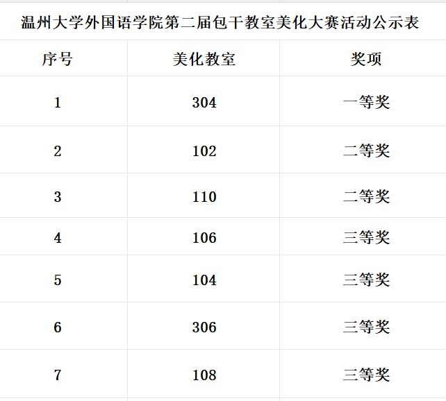 关于太阳成集团tyc7111cc第二届包干教室美化大赛评选结果的公示